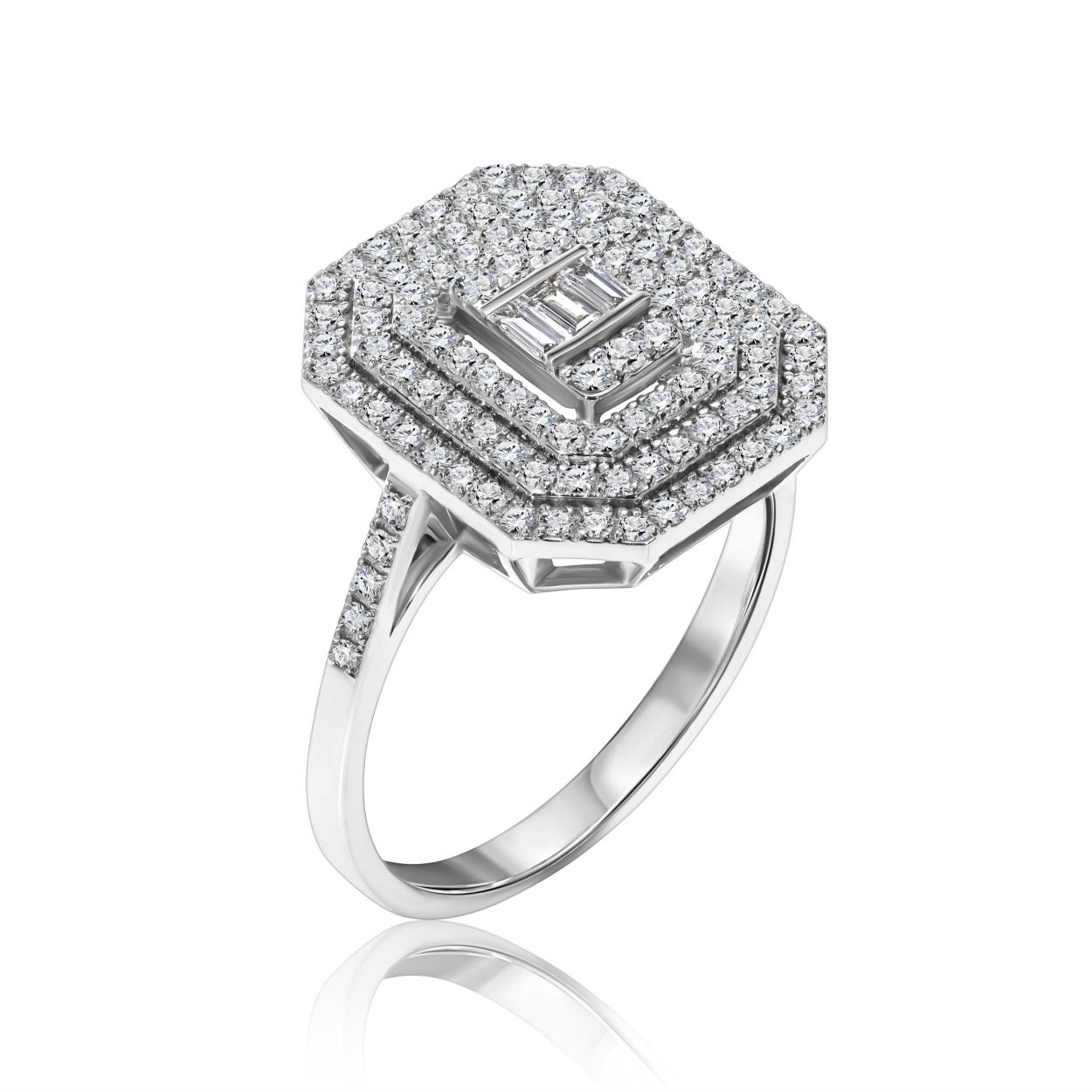 טבעת זהב לבן מלאה באבנים יהלומים טבעיים מדהימה ומרשימה ומתאימה לאירועים מיוחדים .