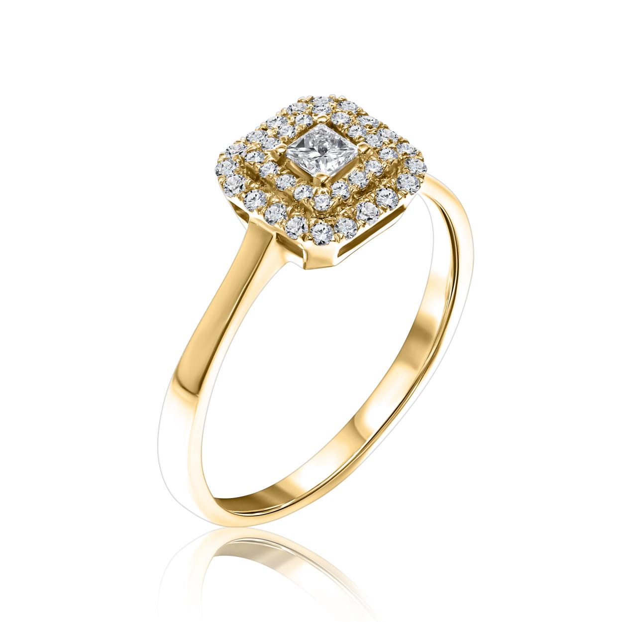 טבעת זהב צהוב משופצת באבנים יהלומים דגם פרנסס מרובע