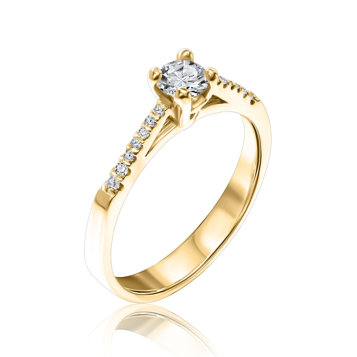 טבעת סוליטר זהב צהוב עם אבן יהלום מרכזית ואבנים בצדדים